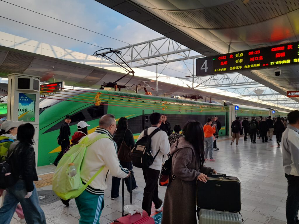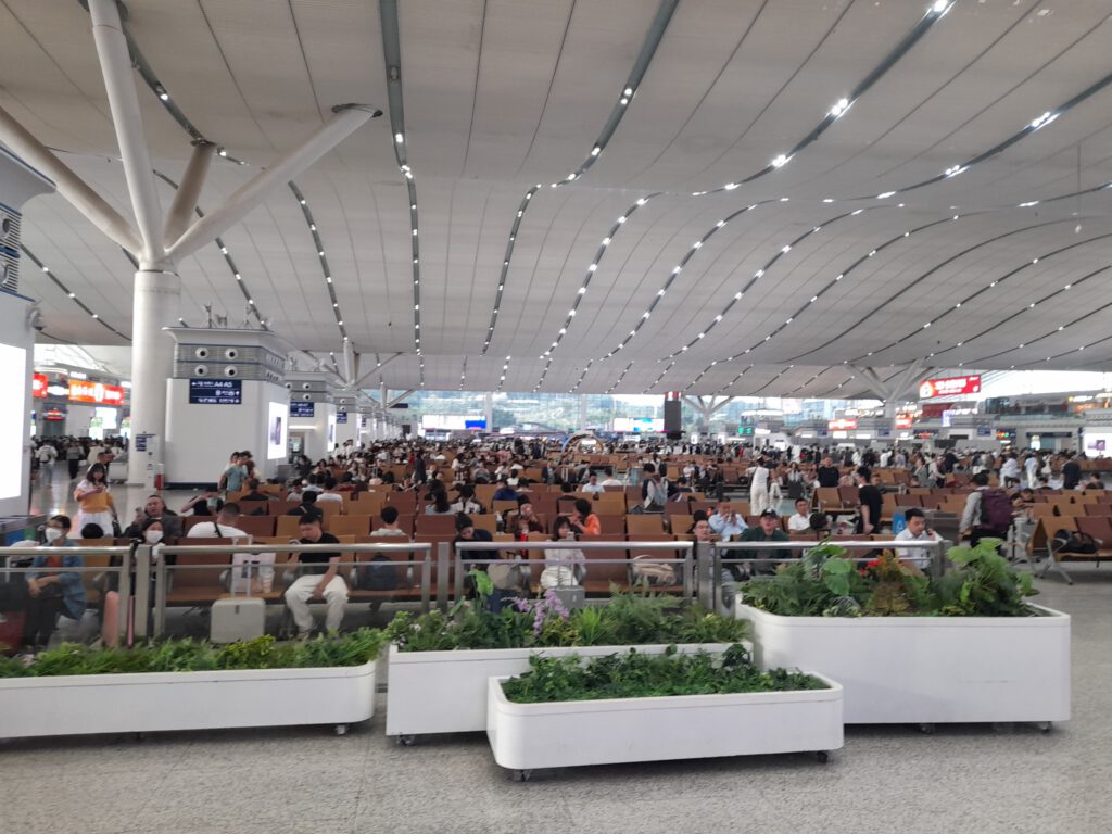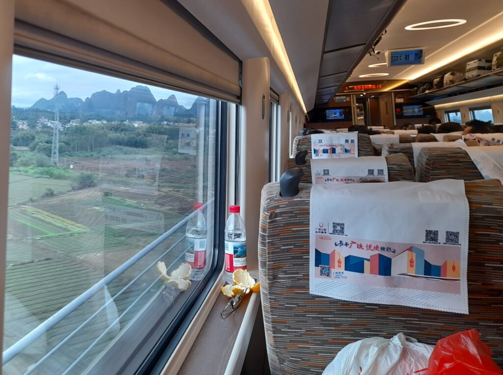 Zugfahren in China läuft etwas anders als in Deutschland. Man braucht kein Ticket ausgedruckt haben, sondern nur den Reisepass beim einchecken vorzeigen. Dafür muss man etwas früher da sein, weil das Gepäck zunächst durch die Sicherheitskontrolle (wie bei uns am Flughafen) muss, und dann wird über den Reisepass kontrolliert ob man ein Ticket hat. Dann geht es zum Wartesaal und wenn die Zeit zum Einchecken ist (etwas vor der Abfahrtszeit) gibt es eine weitere Reisepass-Ticket-Kontrolle. Dafür wird man dann aber im Zug nicht kontrolliert.